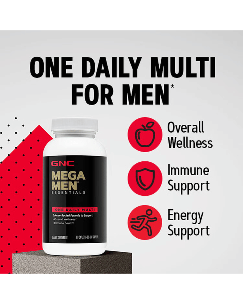 Meet GNC Mega Men Essential One Daily—the once-a-day multivitamin crafted for men who want complete, no-fuss nutrition in Pakistan. If you’re comparing GNC Mega Men Essential One Daily price in Pakistan or looking for a dependable men’s multivitamin for energy, immunity, and overall wellness, this balanced formula delivers essentials in a single tablet. B-vitamins help convert food into energy for work, study, and gym sessions; Vitamins C & D3 with Zinc support immune function; while antioxidants (A, C, E, Selenium) help protect against everyday oxidative stress. Magnesium contributes to normal muscle function, and a focused blend for brain and heart health supports daily performance.